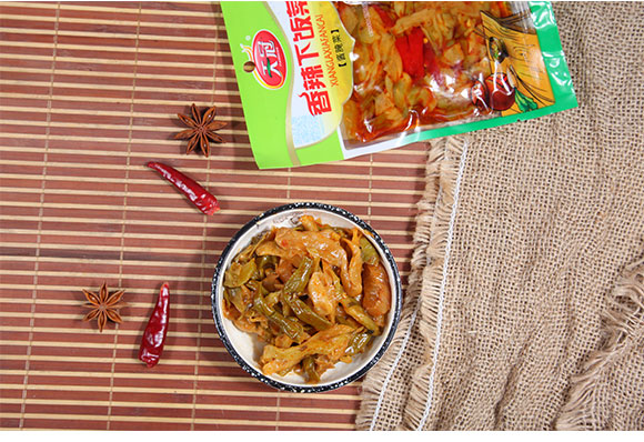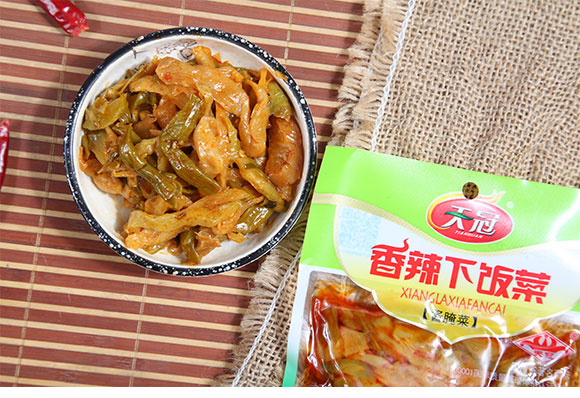 成都天冠食品有限公司承接各餐飲連鎖企業、食堂、酒店定制加工餐飲裝下飯咸菜(蘿卜干、大頭菜、榨菜、豇豆、海帶絲、泡黃豆、泡花生、泡魚酸菜底料),可根據客戶要求風味定制生產。我公司有技術人員進行配方調制,以客戶滿意為標準定制生產,可免費提供樣品試用,公司資質齊全,正規化管理,嚴格按照國家食品法組織定制生產。