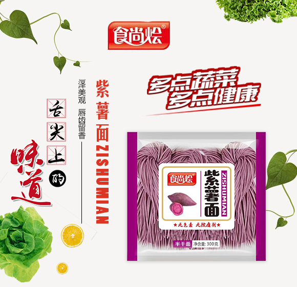 產品說明:食尚燴紫薯面系列采用河北優質小麥與紫薯粉為原料,運用先進生產工藝研制而成,不添加任何防腐劑,產品條形光潔、柔軟適口、鮮香美味、耐煮不渾湯的特點,是您理想的健康產品。