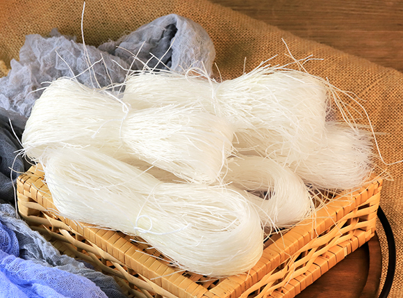 精選綠豆精制而成,絲狀均勻,晶瑩潔白。