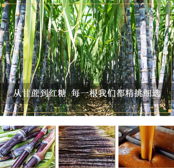 紅糖為甘蔗的莖汁,熬制而成的赤色結晶體