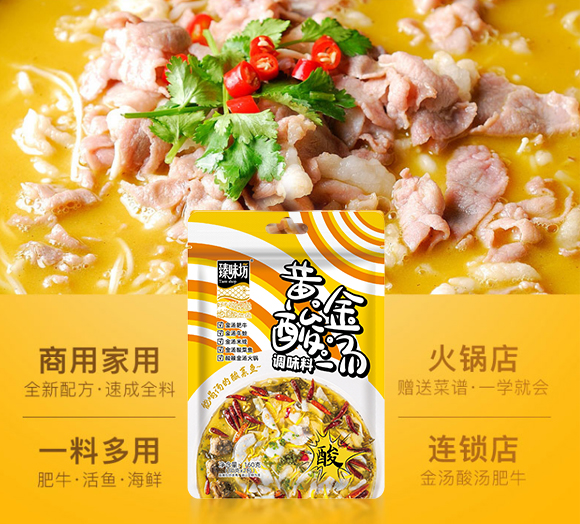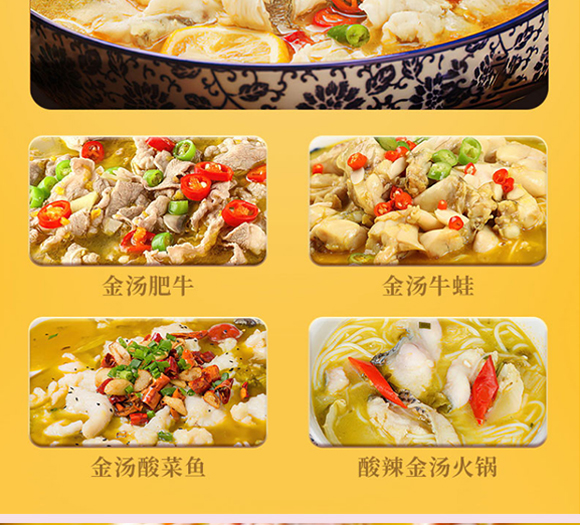 可以做金湯肥牛、金湯牛蛙、金湯米線、金湯酸菜魚、酸辣金湯火鍋