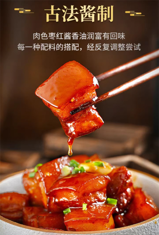 肉色棗紅,醬香油潤,富有回味,每一種配料的搭配,經反復調整嘗試!臻味坊紅燒醬汁醬體色澤鮮紅,細膩粘稠,鮮香入味,提升食欲!