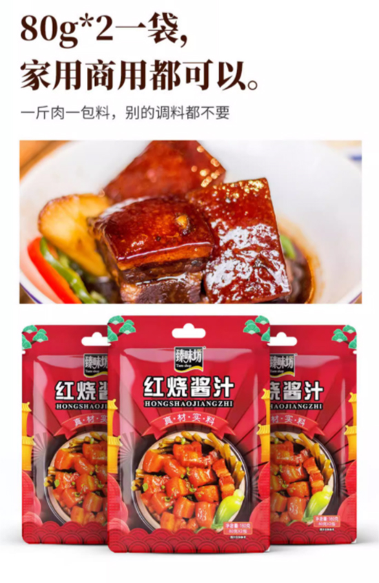 臻味坊紅燒醬汁,一斤肉一包料,別的調料都不要!肉香留齒,紅燒入味!