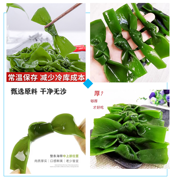 藻盛源火鍋脫鹽海帶系列產(chǎn)品,不含檸檬酸和脫氫乙酸鈉,營養(yǎng)健康,真正做到讓消費(fèi)者吃的放心!