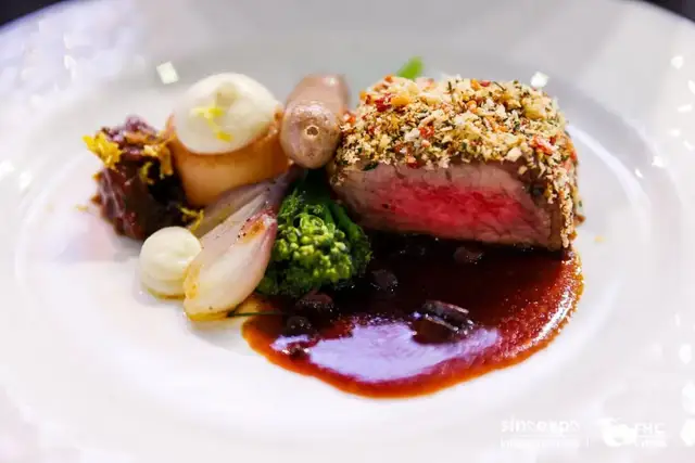 作品名稱:紅酒汁煎牛里脊、炸牛肝菌意大利餃子、烤土豆泥燉土豆、上釉小胡蘿卜、炒西蘭花櫻桃番茄蘑菇蘆筍、煎西葫蘆