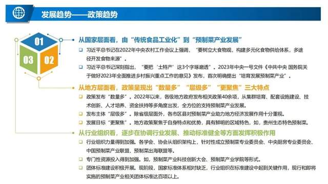 - 國家政策:近年來國家支持預制菜產業發展的主要政策情況。