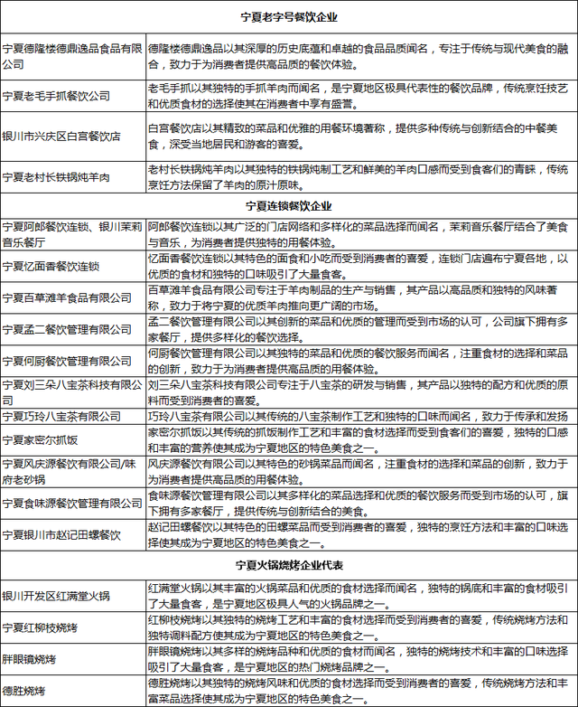 目前展會招展火熱進行中,將邀請寧夏本地以及左旗、烏海、定邊、靖邊、臨河及毗鄰地區餐飲協會組團前來采購食材,共同探索春季菜品的創新之路。目前報名參展的餐飲企業已經匯聚了寧夏的老字號企業、連鎖企業、中餐類餐飲企業以及火鍋燒烤企業等400+家,這些企業不僅在寧夏地區具有較高的知名度和影響力,而且在餐飲行業的發展中也具有重要的地位。比如: