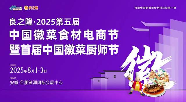 8月1-3日,良之隆·2025第五屆中國徽菜食材電商節將在合肥濱湖國際會展中心隆重舉行,致力于“食餐融合發展、共創皖美味道”,打造新徽菜食材供應鏈第一展。