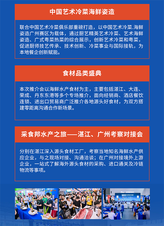 6月18日至22日期間,在湛江和廣州兩座城市接力開展。讓生產企業、經銷商以及國外買家和賣家能夠更合理地規劃行程,同時進一步打通這兩座重點水產城市的貿易生態鏈。通過資源共享與優勢互補,共同賦能水產生態鏈的升級與發展。