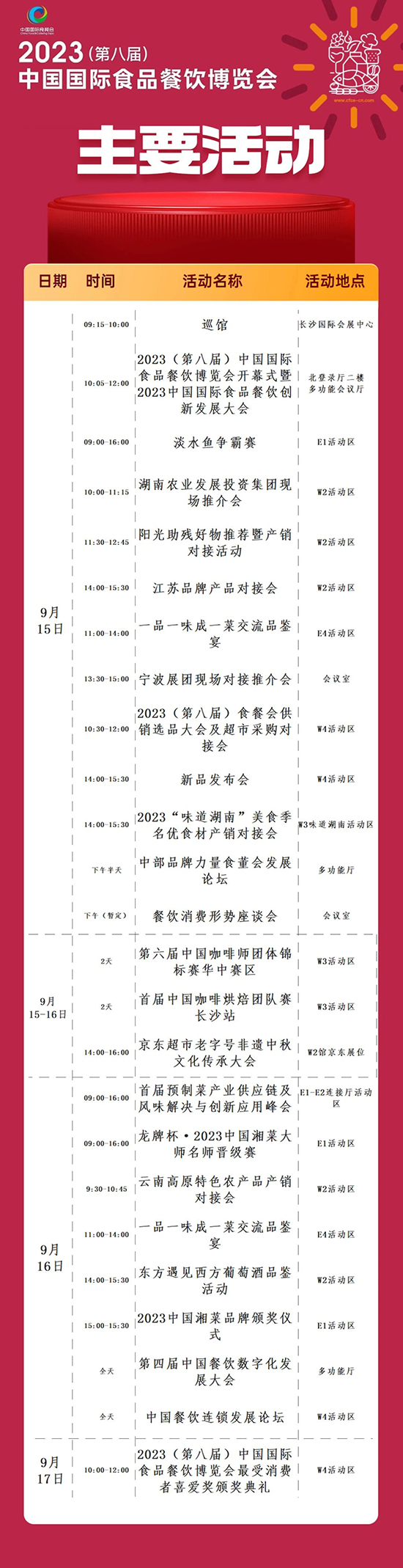 中國國際食品餐飲博覽會(以下簡稱“食餐會”)是食餐行業(yè)內(nèi)貿(mào)流通領(lǐng)域的重點專業(yè)展會,由商務部、湖南省主辦。