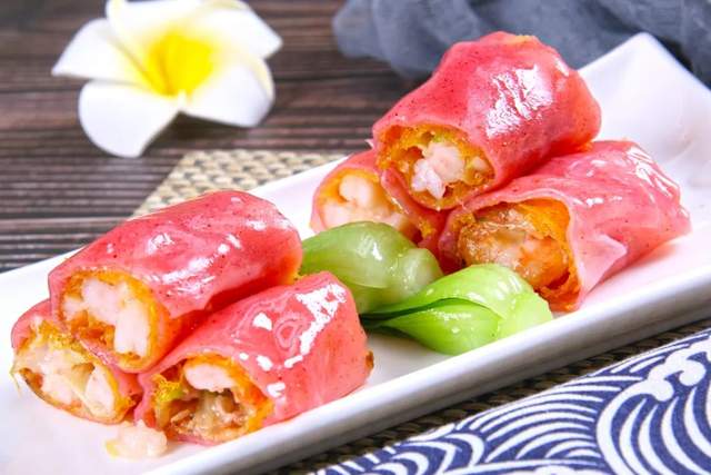 “外軟”,是指米漿做的腸衣滑嫩Q彈;里嫩則是選用彈牙鮮嫩的蝦肉作為內餡;而中脆,則是中間夾層的米網皮。