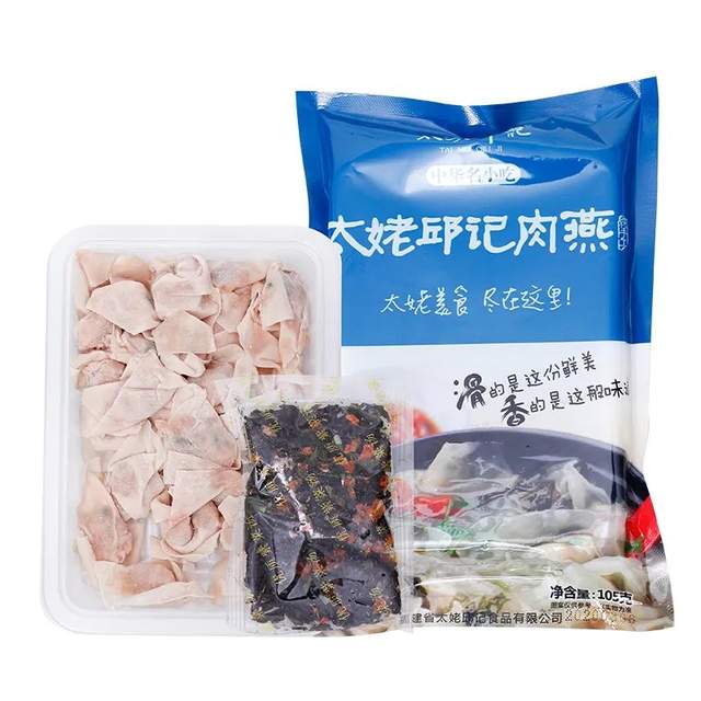 福建省太姥邱記食品有限公司成立于2014年09月,注冊地位于福建省福鼎市太姥山水井頭工業(yè)區(qū),法定代表人為邱世強。經營范圍包括:小籠珍珠包、福鼎肉片、蜜汁雞翅、肉燕、魚滑、牛肉丸等小吃系列產品。工廠車間3000多平米,分為速凍車間(生產福鼎肉片、小籠包)和蜜汁雞翅等醬鹵肉制品車間。