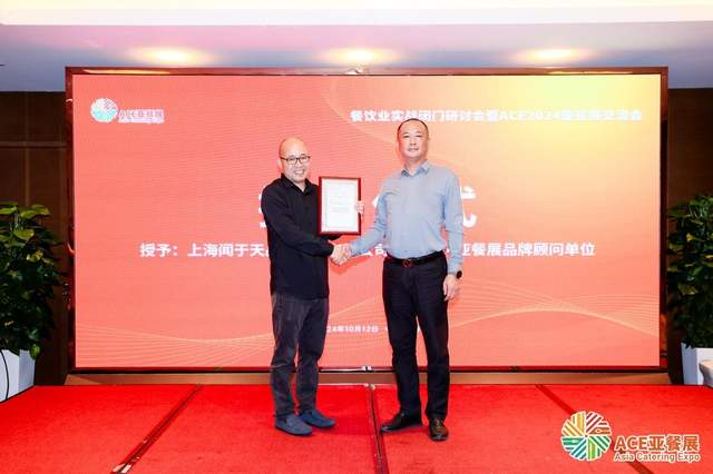 在活動現場,中法合資高博中貿國際會展集團銷售總監蔣士廣還做了ACE2024亞餐展推介,詳細介紹了展會品牌、歷史、資源、規劃以及目前展會進展情況。上海聞于天品牌咨詢有限公司還受邀成為ACE2024亞餐展品牌顧問單位,并在現場特別接受法國高美艾博展覽集團中國區業務拓展總監、ACE亞餐展項目負責人王卓頒發的聘書。