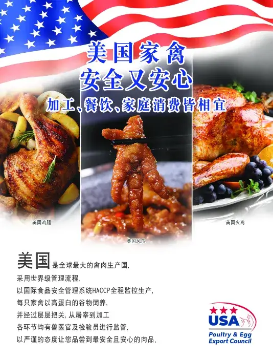 美國家禽產品的優勢特點:安全又安心,加工、餐飲、家庭消費皆相宜。