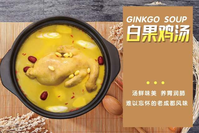 真材實料含白果,雞湯底味為主,藥膳風味濃郁。應用面廣,適用于清湯火鍋,米線、面、燉雞等。