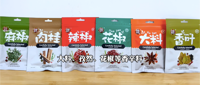 西餐所用的研磨瓶系列,抹在面包片上吃起來顆粒感豐富的海鹽花生醬等等,商超系列所需要的小料包,還有家庭裝燒烤料,燉肉料,香葉,桂皮,肉蔻,八角等等,也都一應配備。