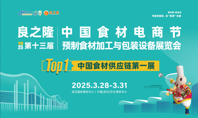 3月28日,良之隆·2025第十三屆中國食材電商節&預制食材加工與包裝設備展覽會在武漢國博中心&武漢客廳·中國文化博覽中心邀您參加。
