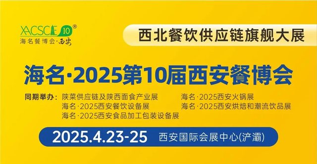 商機不等人!搶占西北餐飲市場先機,與行業(yè)大咖零距離對接,一站式解鎖2025年爆品密碼!4月23-25日,西安國際會展中心(浐灞),海名·2025第10屆西安餐飲供應鏈博覽會誠邀您共赴餐飲產(chǎn)業(yè)升級盛宴!