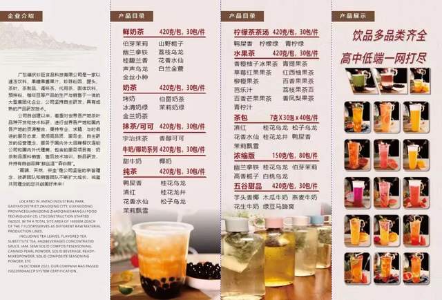 廣東肇慶衫巨食品科技有限公司是一家以速凍飲料、果糖果醬果汁、珍珠粉圓、罐頭、茶葉、茶制品、調味茶、代用茶、固體飲料、預拌粉、咖啡豆等產品的生產與銷售于一體的大型集團化企業,公司堅持自主研發,具有成熟的產品研發技術。