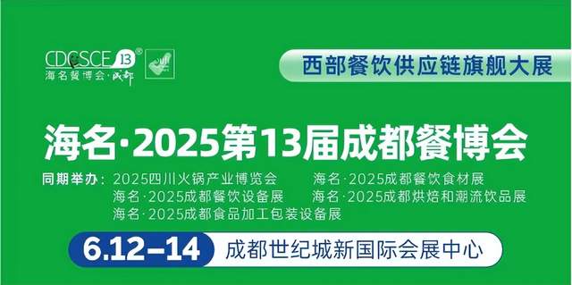 在全國餐飲行業(yè)風起云涌、競爭日益激烈的背景下,成都憑借其獨特的飲食文化底蘊、龐大的市場規(guī)模以及強勁的消費能力,持續(xù)引領餐飲潮流,穩(wěn)坐“國際美食之都”的寶座。為進一步推動成都餐飲業(yè)的國際化進程,促進餐飲產(chǎn)業(yè)鏈的深度融合與升級,海名・2025 第 13 屆成都餐飲供應鏈博覽會將于 6 月 12 - 14 日在成都世紀城新國際會展中心盛大舉辦。