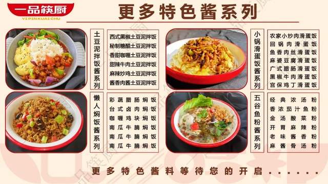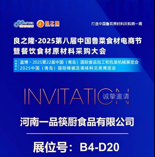 河南一品筷廚一品筷廚真誠地邀您參加于中國-青島國際展覽中心舉辦的《第八屆中國魯菜食材電商節》,屆時有來自社會各界的餐飲行業同仁,齊聚青島。一品筷廚,中國餐飲“美味+經營”一站式解決方案服務商,生產基地位于新鄉市原陽工業園區,配備36條智能生產線,年產能達50000噸,專注于餐飲標準化醬料的研發、定制、生產與銷售。公司秉承“一醬出餐、一醬多用,省時、省力、省人工、快捷美味”的先進理念,深耕餐飲小吃領域。產品已形成100多種醬料系列,并衍生出1000多種味型,真正做到“一口醬料,匯聚萬千風味”堪稱中國拌面醬的品質擔當!