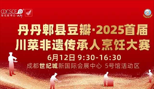 為響應政府關于川菜烹飪技藝傳承的號召,為推動川菜烹飪技藝傳承,為給川菜產業培養高素質從業者,丹丹郫縣豆瓣·2025首屆川菜非遺傳承人烹飪大賽將于6月12日在成都世紀城新國際會展中心盛大舉行,與海名·2025第13屆成都餐飲供應鏈博覽會同期舉辦,旨在通過競技與交流,傳承傳統技藝、堅守正宗風味、發揚工匠精神、推廣川菜文化。