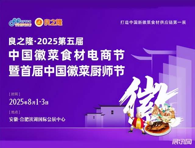良之隆·2025第五屆中國徽菜食材電商節暨首屆中國徽菜廚師節將于2025年8月1-3日在合肥濱湖國際會展中心開幕,連開3天,免費逛!