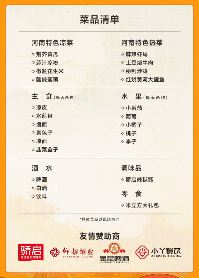 我們精心準備了河南特色美食,從開胃涼菜、飄香熱炒、經典下酒菜,到風味主食、時令鮮果、地道酒水飲品…… 一站式滿足您的味蕾期待!