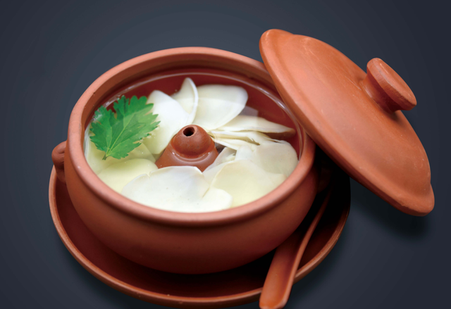 “清湯酸辣烏魚蛋湯”是資深級中國烹飪大師、二合館傳承人李志順先生的恩師,國寶級烹飪大師侯瑞軒先生在山東名菜“燴烏魚蛋湯”的基礎上,創新的一道名菜,原是濃湯勾芡,后采用豫菜傳統吊清湯技藝制作而成。其特點:湯清似水、味道醇厚。因烏魚蛋見醋發澀,故選用天然發酵酸汁,使其:酸不見醋、辣不見椒、清香不見油,微酸微辣、妙不可言。