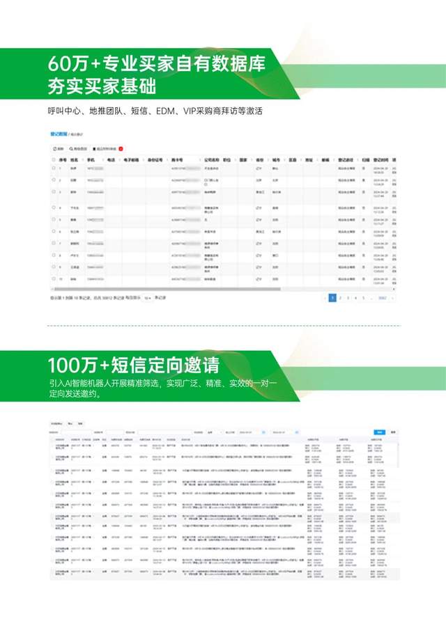 數據賦能:依托海名13年沉淀的60萬+活躍采購商數據庫,通過智能匹配系統定向推送展會信息,實現“需求標簽化匹配+短信/社群精準觸達”,提升觀眾到場率。