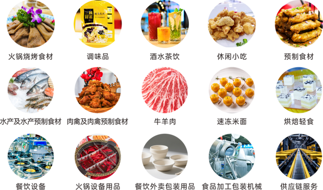 展品類別涵蓋火鍋燒烤食材、調味品、酒水茶飲、休閑小吃、預制食材、肉禽預制菜、水產預制菜、牛羊肉、速凍米面、烘焙輕食、餐飲設備、火鍋設備用品、餐飲外賣包裝用品、食品加工包裝機械、供應鏈服務在內的全產業鏈展品,致力于為西南乃至全國餐企構建更開放高效的資源交流空間。