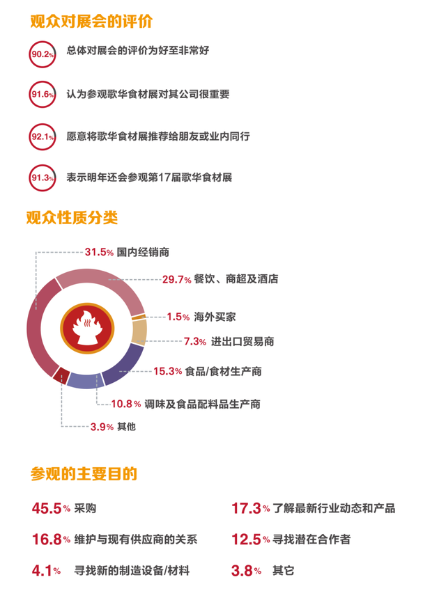 上海國(guó)際餐飲食材展覽會(huì)(簡(jiǎn)稱:歌華食材展)作為餐飲食材行業(yè)的風(fēng)向標(biāo),已深耕行業(yè)十六載,展會(huì)已構(gòu)建覆蓋食材研發(fā)、生產(chǎn)加工、商貿(mào)配送、餐飲終端的完整生態(tài)圈,成為餐飲從業(yè)者不可缺席的一站式商貿(mào)平臺(tái)。上屆展會(huì)總展出面積達(dá)到120,000平方米,共吸引到全球3,000多家展商和110,889人次觀眾參加。