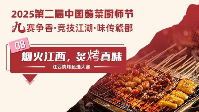 夜幕下的美食主角——燒烤,將在本次燒烤大賽中大放光彩,炭火間的焦香與調(diào)味的精妙在此刻完美融合,盡情釋放具有濃郁贛菜風(fēng)味的燒烤美食。