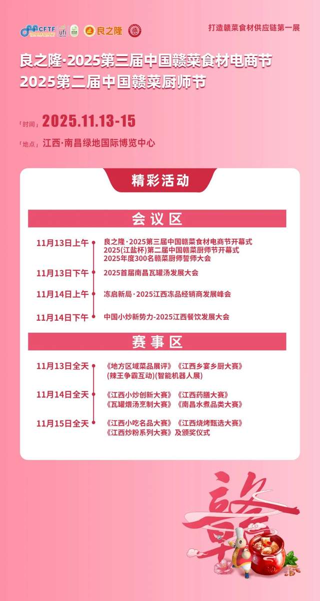11月13-15日,良之隆・2025第三屆中國贛菜食材電商節(jié)將在南昌綠地國際博覽中心盛大舉辦,本屆展會有五百多家國內(nèi)食材廠家參展,帶來萬余款肉禽、水產(chǎn)、面點(diǎn)、調(diào)味品、果蔬、本地特色食材等各類食材,助力贛菜創(chuàng)新,并積極探討如何保持江西小炒火熱出圈之勢,推動贛菜進(jìn)一步走向全國。